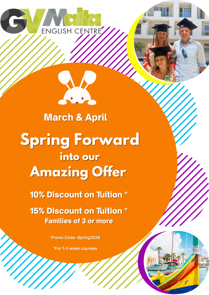 This is a perfect opportunity to learn English with GV Malta while enjoying our limited time promotion: